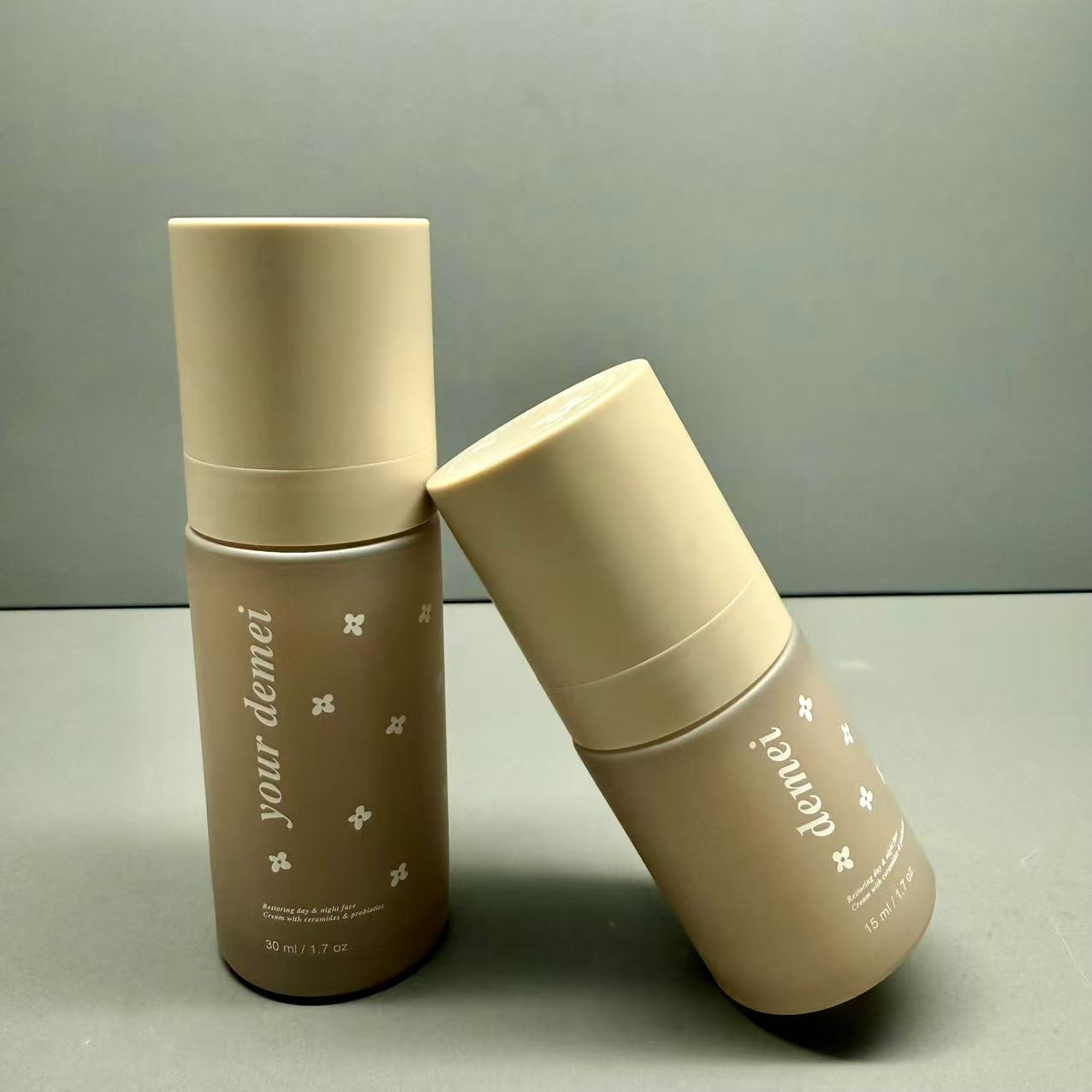 Custom printed 15ml 30ml 50ml plastic inner glass outer refillable airless bottle set cosmetic cream lotion packaging