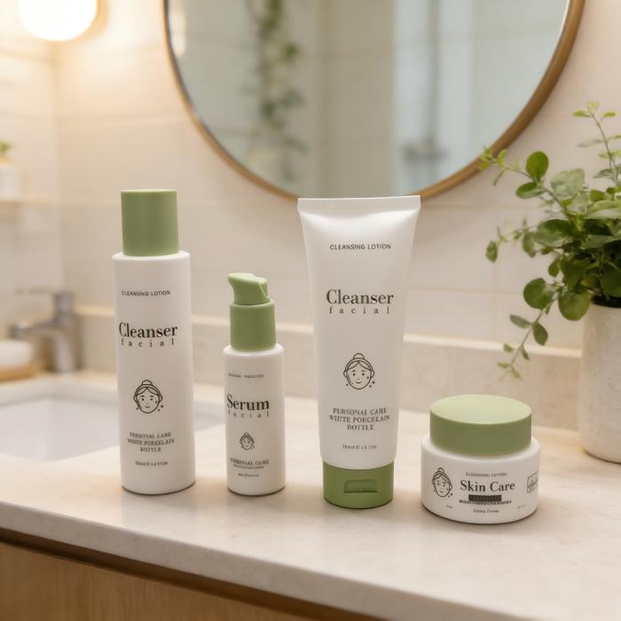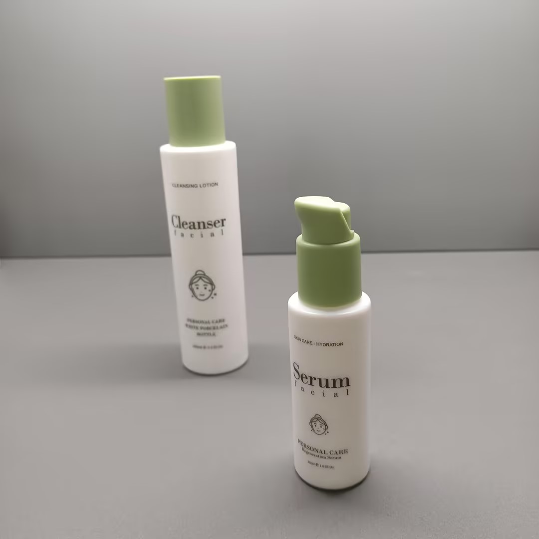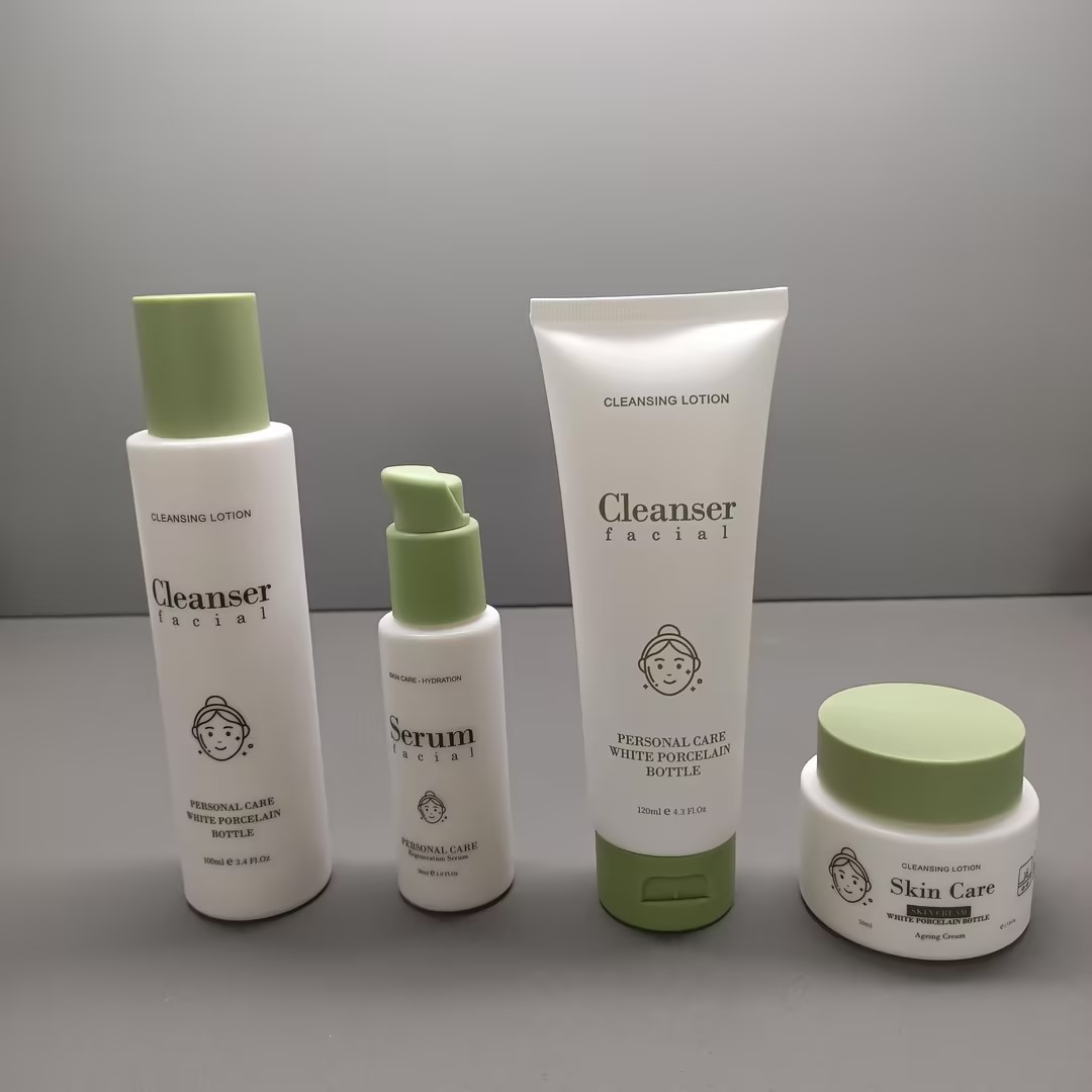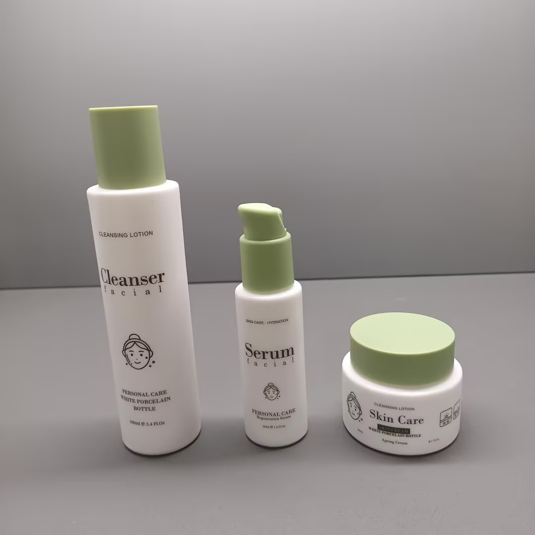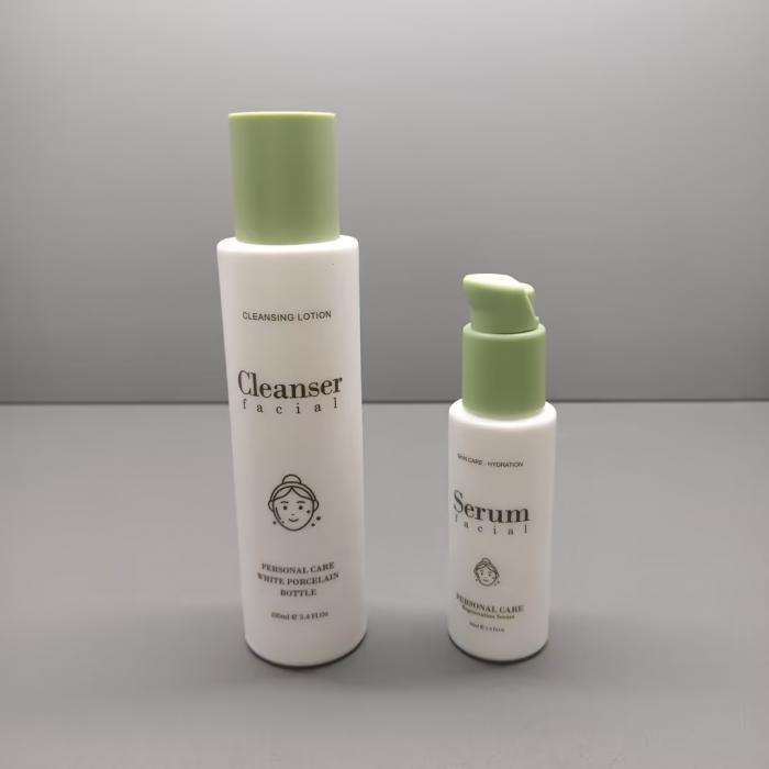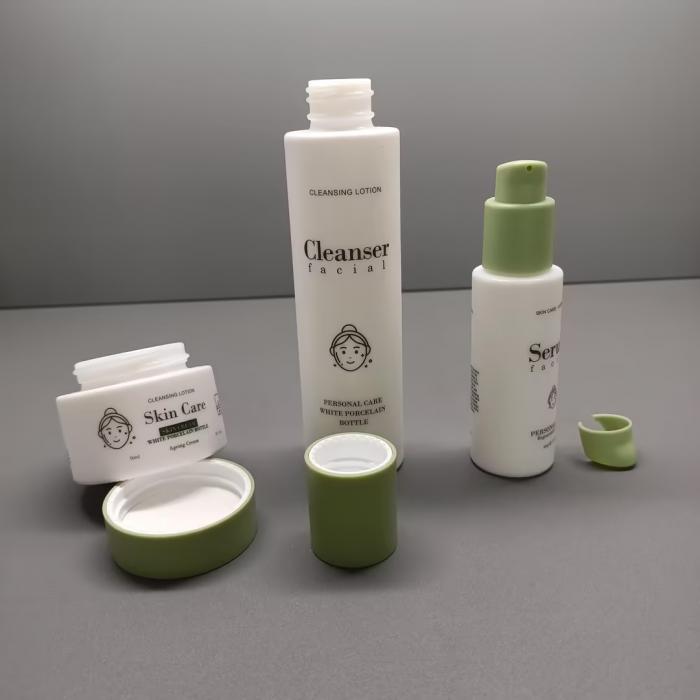 Wholesale 50ml 50g 100ml 120ml Custom Logo Lotion Bottle White Porcelain Bottles and Jars for Facial Cleanser Serum and Cream