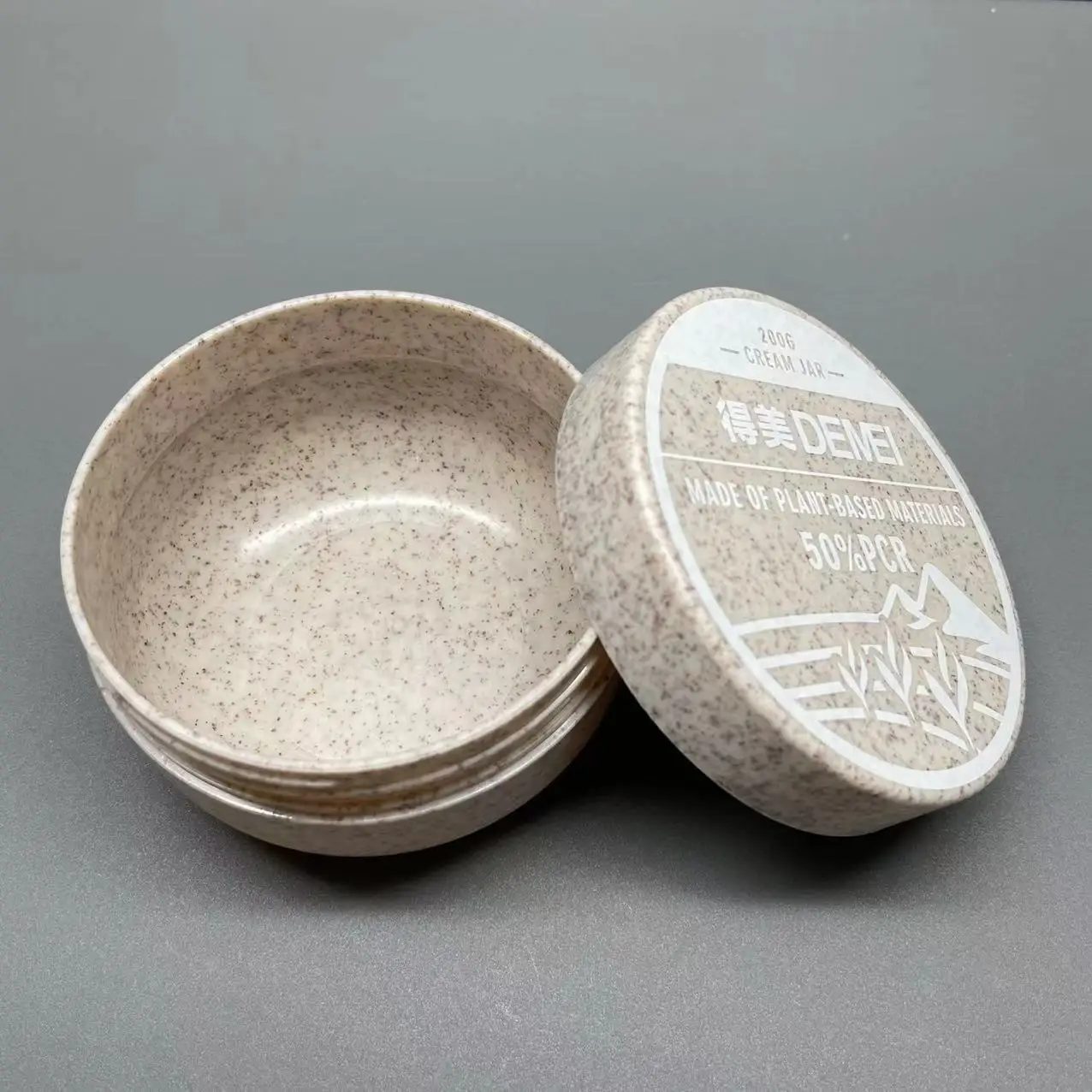 Eco friendly Refillable PCR + wheat straw material cream jar cosmetic plastic bottle 100/200/300g