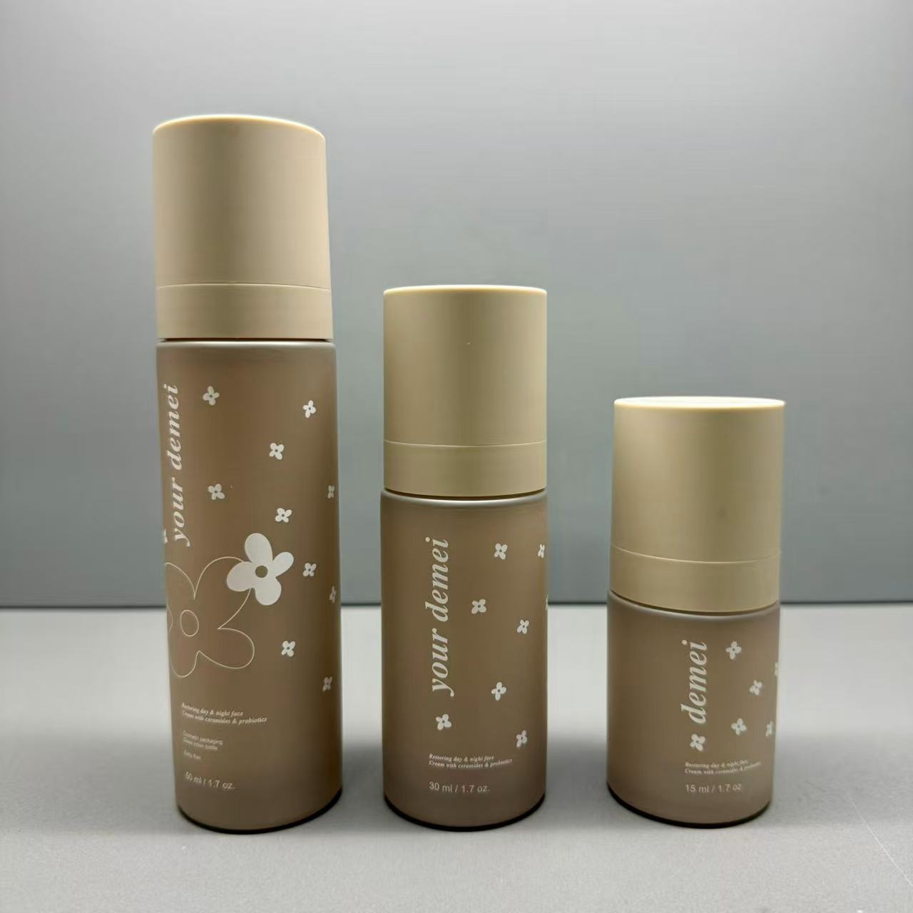 Custom printed 15ml 30ml 50ml plastic inner glass outer refillable airless bottle set cosmetic cream lotion packaging