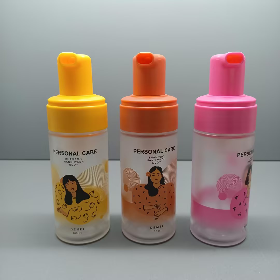 Wholesale 100ml Customize Color Glass Bottle Round Shape Foam Pump Bottle with Logo Screen Printed for Shampoo Bottle SkinCare