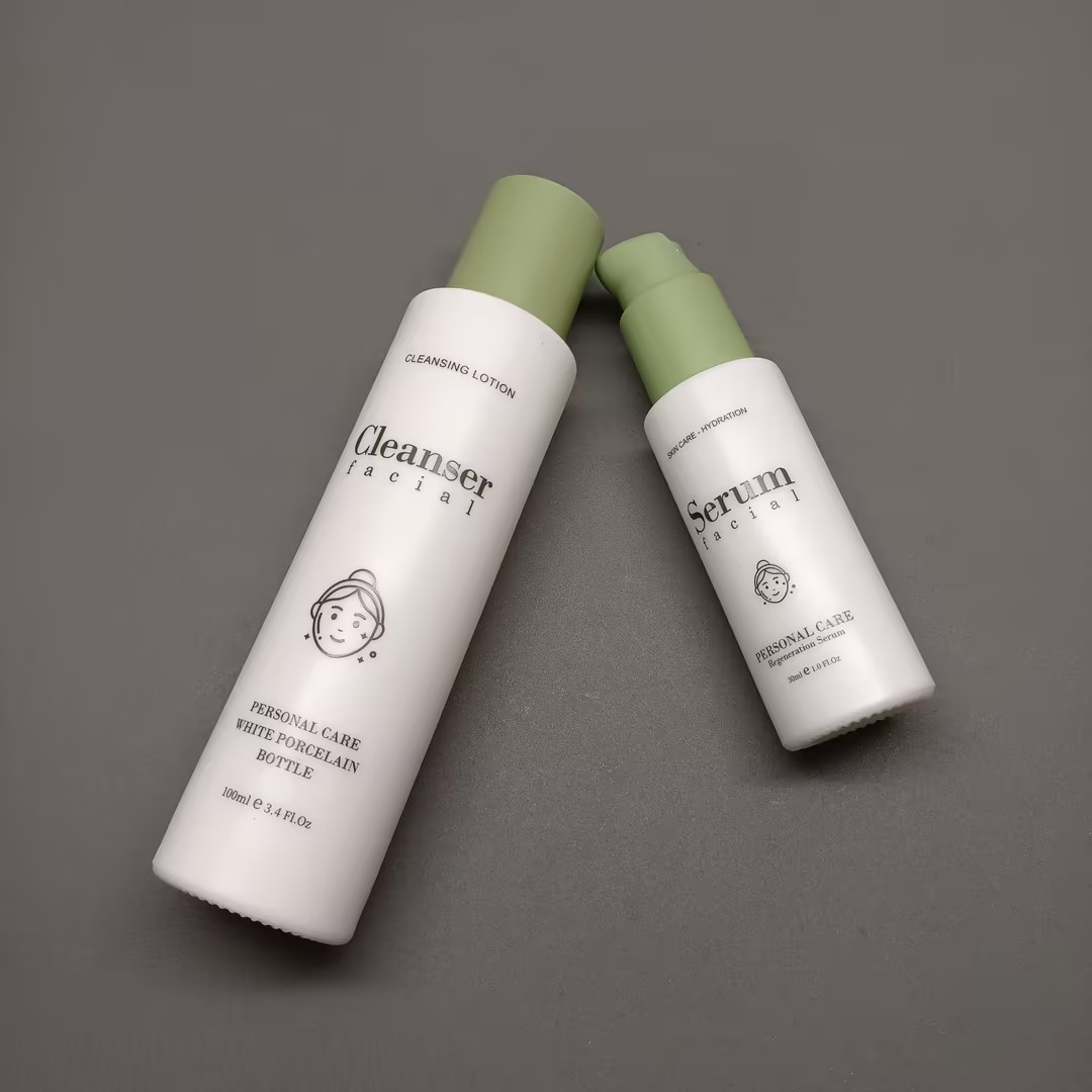 Wholesale 50ml 50g 100ml 120ml Custom Logo Lotion Bottle White Porcelain Bottles and Jars for Facial Cleanser Serum and Cream